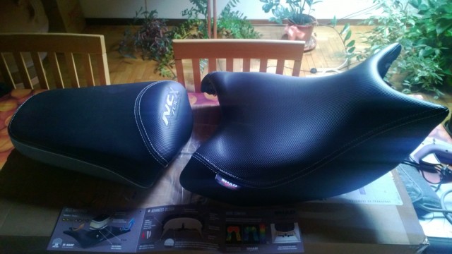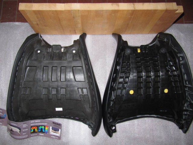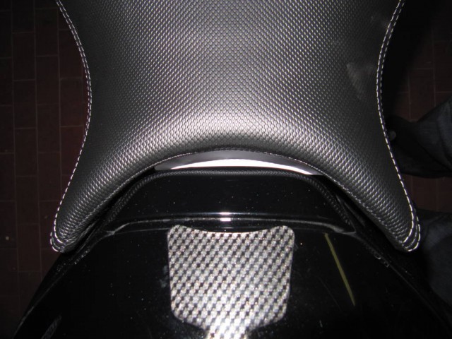 ) piegando leggermente le staffe di aggancio della sella (quelle sulla moto) che sono leggermente piegate all'indietro (almeno le mie erano cosi...), inoltre ho abbassato leggermente l'altezza dei gommini di serie (un paio di mm.)
