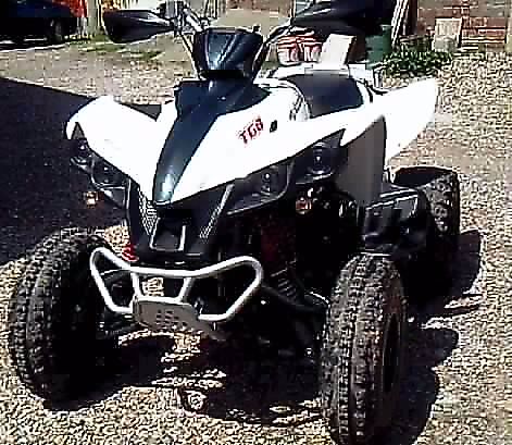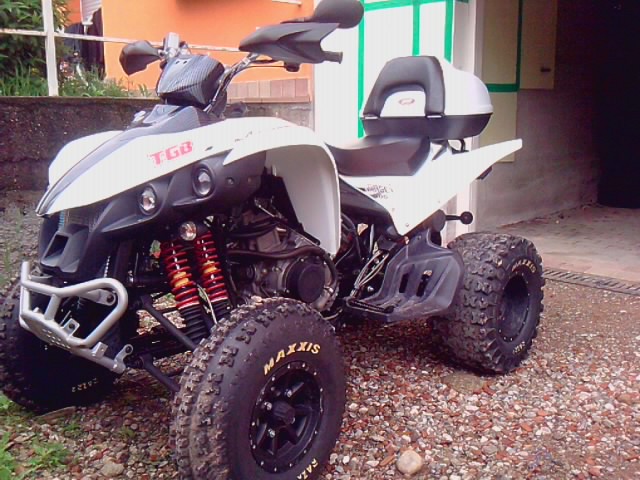 | Note: vendo tgb target 400 2x4 del 2008 km 3500 usato solo per passeggiate con la moglie gomme ant quasi nuove posteriori da cambiare vendo a euro 3200 trattabili se interessati | |
