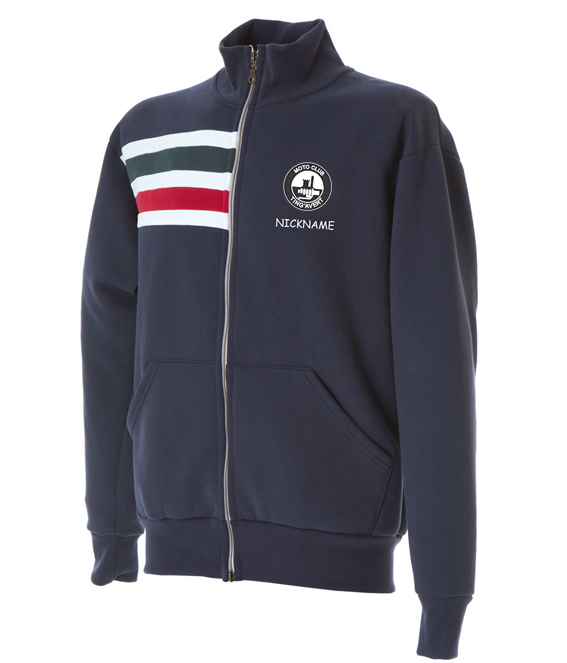Le felpe saranno personalizzate con ricamo sia sul fronte sia sul retro, in colore bianco!