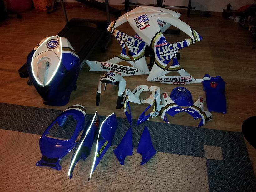 | Note: Come titolo vendo tutti pezzi racing per gsx-r 600-750 k6/k7 in ottimissimo stato fornisco foto dettagliate via email ECCO LA LISTA: -amm. di sterzo WP senza attacchi- -pedane arretrate racing nere-oro -pompa freno radiale accossato 1 anno di vita -cella di carico cambio elettronico rapid bike -terminale HPCORSE SPS EVO1 in titanio VENDUTO -dischi freno galfer racing a margherita potentissimi con solo 8000 kilometri su strada e 1 giornata in pista -cupolino fabbri doppia bolla -Mono ammortizzatore racing FSM31 con precarico idraulico+2 molle 80+90 kg -KIT cartucce forcelle mupo R-EVOLUTION -ed infine la mia chicca carena LUCKY STRIKE COLORE BLU BELLISSIMA in ABS simile all'originale completa serbatoio originale verniciato sulla grafica GUARDA LE FOTO (ps piccola raschiata fianchetto basso sinistro sul cordolo a franciacorta foto 3) | |
