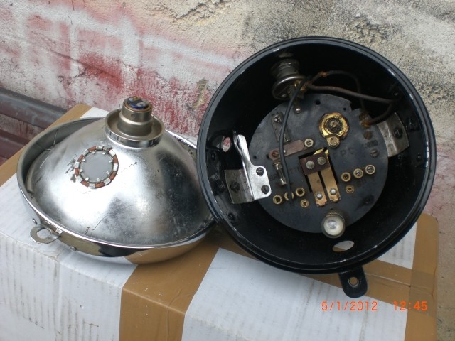 Questa è la foto di un altro meccanismo identico ma di un faro militare che differisce solo per la presenza di meno contatti in quanto i fari delle moto militari generalmente non avevano la spia della carica della dinamo e non avevano la chiavetta.
