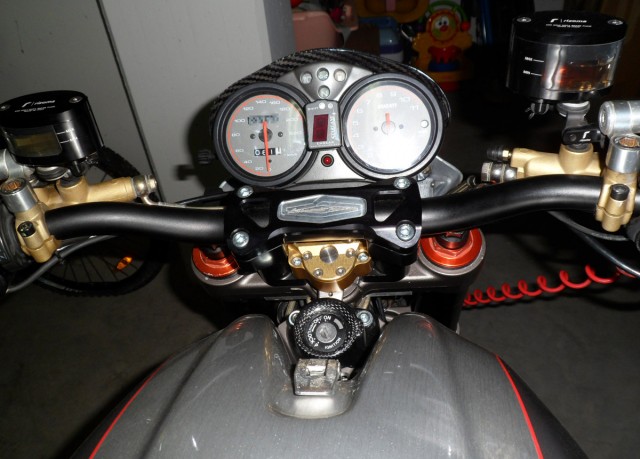 amortizzatore di serzo Ohlins ( non c'entra col manubrio ma mi ha cambiato la stabilità dell'anteriore, ergo minori vibrazioni).