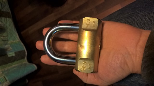 L'ho trovato dal ferramenta sotto casa, era l'ultimo rimasto tra i lucchetti cilindrici grandi, ed era proprio il modello che cercavo, quello con l'arco di diametro maggiore