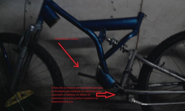 sono nuovo del sito ... Volevo un po parlare di un mio progetto che ormai o quasi terminato.. si tratta di una bici da mountain bike con un motore big bore 50 cc 2 travasi montato nel centro ... cosa ne pensate ?!?! Premetto che devo ancora mettere la foto con il motore montato perché in questo momento non ce lo,la mia idea era imitare una motocross ecco perché ho preferito montare il motore nel centro ed anche per avere più equilibrio