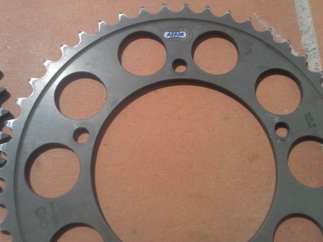 | Note: Vendo set 4 corone in ergal passo 520 usate ma in buono stato, varie marche, montano su quasi tt le giapponesi, denti 45-46-47-48,vendo perche ho venduto la moto. | |