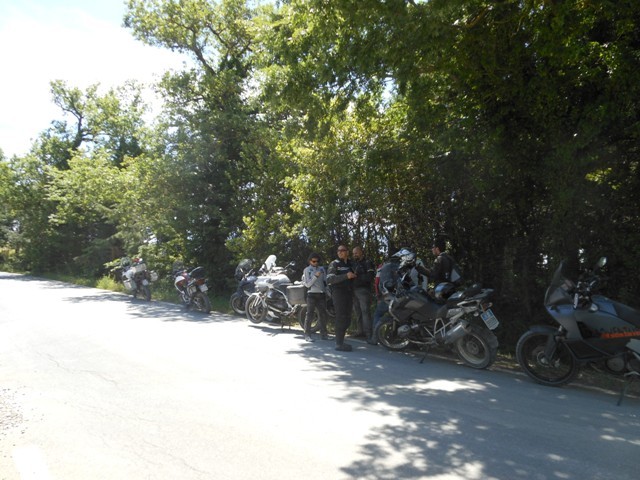 ....piano piano ce la facciamo a farla per intero!!!poca ma grande compagnia per un'avventura che tra una sculata e l'altra e' sempre bella da farsi per gli amici delle bicilindriche!!!grazie davvero a tutti!!!