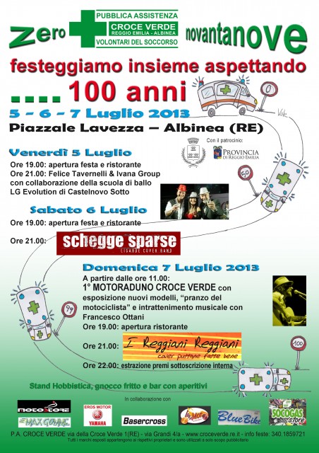Il ricavato del ristorante verrà devoluto alla Croce Verde di Reggio Emilia e Albinea.