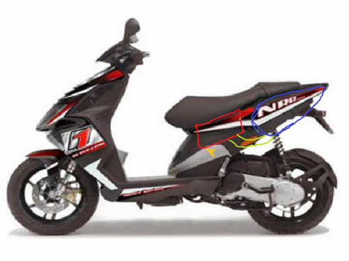 poi prendo una tanica che non abbia il buco enorme la metti nel sottosella poi fai un buco nel sottosella e con un tubo colleghi il serbatoio alla tanica (tubo verde nel disegno)
