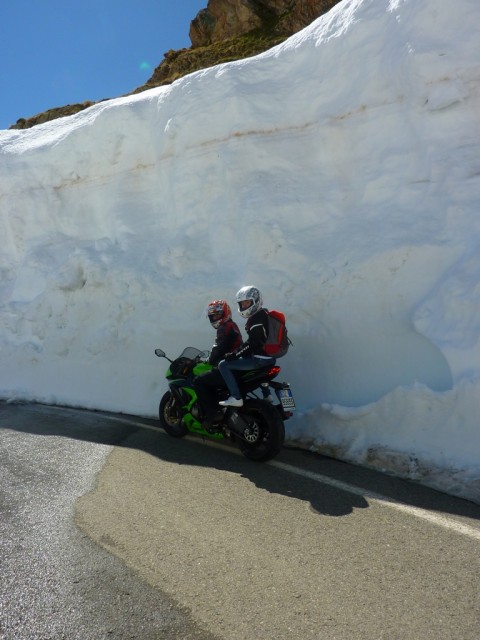 ), ri-scendiamo a valle: ci ri-godiamo lo spettacolo pazzesco e mai visto prima (nonostante la vicinanza di questo colle ai nostri garage), e ci ri-fermiamo nei pressi di Noasca per perdere un po' di tempo al bar (con grande scorno di Edo: "Ma siamo venuti qui per mangiare o per andare in moto?!?"