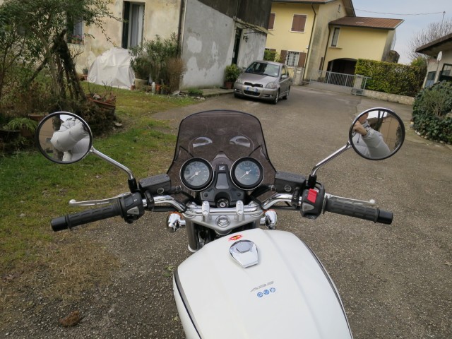 piccola nota: mio figlio che è un bravo fotografo mi ha fatto notare che ho sbagliato ad usare il grandangolo e che il alcune foto il cupolino e le forme della moto risultano un tantino ciccione...decisamente dal vero è più bella.