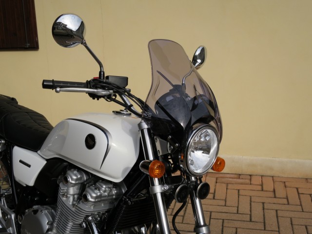 Trovo che stia benissimo perchè si sposa perfettamente col fanale e con le linee tondeggianti della CB. Io lo preferirei trasparente e incolore, ho qualche dubbio sulla protettività perchè la sua rotondità prelude ad un giro d'aria proprio sul busto del pilota mentre quelli più tecnici (tipo GS tanto per intenderci) hanno dei risvolti laterali che deviano il flusso all'esterno, ma spero di sbagliarmi. Come mai ti ci vuole così tanto tempo per verificarne l'efficacia? La tua bella fa il letargo invernale
