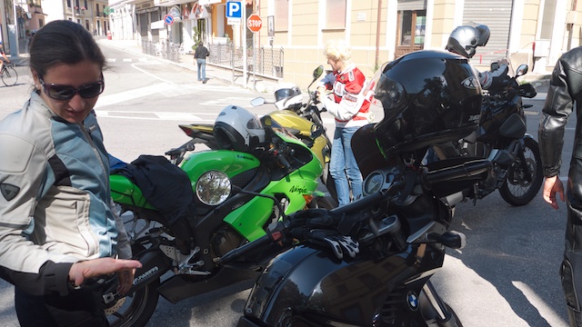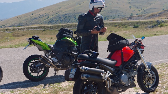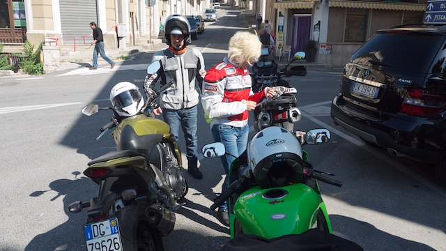 Comincia Paola, con la moto che fa le bizze, si spegne, riparte, si rispegne... Alla fine carro attrezzi e un po' di ore di riposo per lei in nostra attesa a Roccaraso.