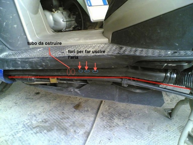 A parere mio, (e come consigliato da tanti che hanno il power) devi togliere la carena della pedana, e poi c'è un tubo, quello servirebbe allo sbocco dell'aria