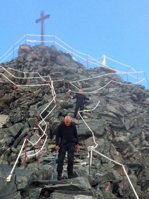 Procede tutto come previsto, peccato che sulla cima di Mont Fort, una nuvola bassa ci impedisca di godere appieno del panorama dei 4000 metri della Valle d’Aosta e del Vallese