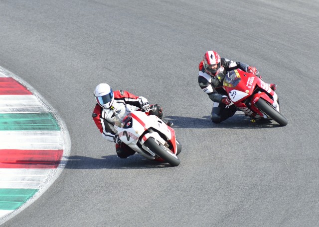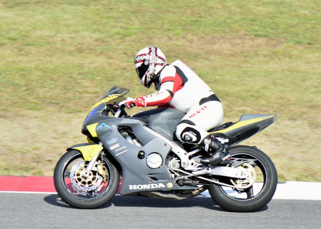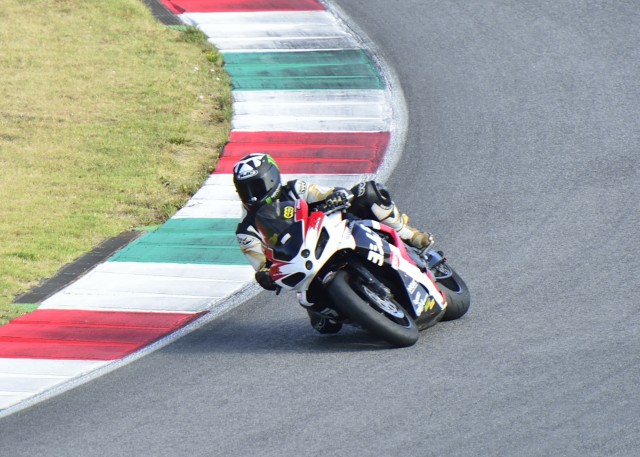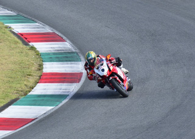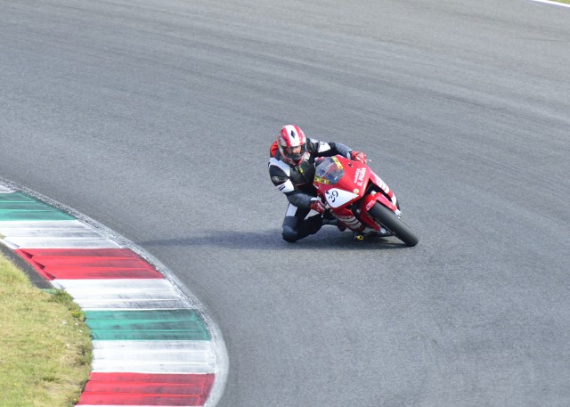 I ragazzi si preparano, accendono le moto, si infilano le tute. Vedo sui volti la tensione e la voglia di migliorarsi che ben conosco. Iniziano a partire coi due Civic ed Alex (dotato di "cannone") a caso mi dirigo verso a tribuna centrale per vederci un po' di pieghe al Correntaio.