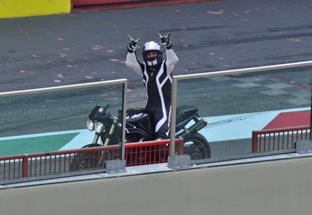 Nonostante le pressanti pressioni di tutti i presenti, riesco nell'intento di togliermi la tuta non appena giunto al paddock (cosa strana in effetti, di solito è il contrario...