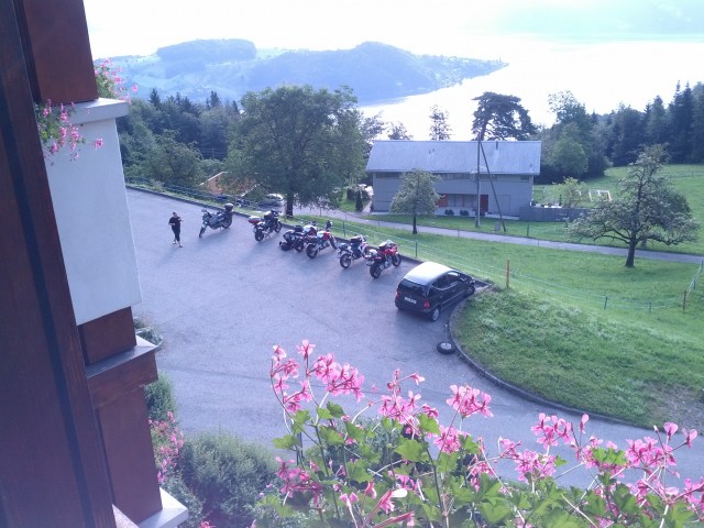 organizzatore arrivo qualche minuto prima e mi concedo un cappuccino e brioche al bar dell'imbarcadero) con ElVufero68 e fj1200abs, partiamo spediti alla volta di Bellinzona.