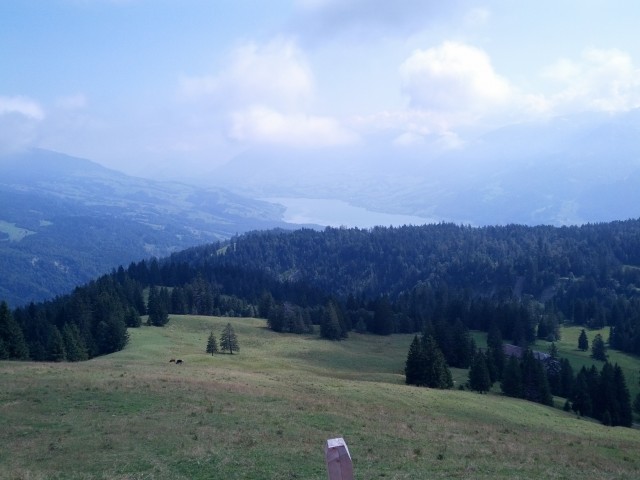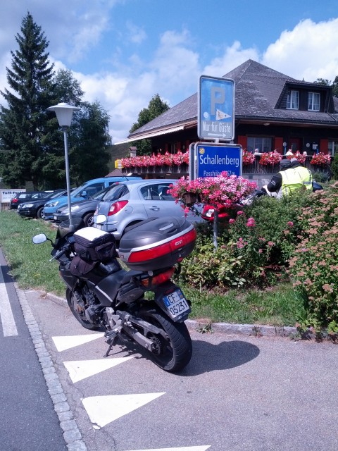 Alla fine della discesa vera e propria si percorre una lunga vallata costellata di deviazioni improvvise che rischiano di farti imboccare l'autostrada, fortunatamente imbrocchiamo sempre la giusta via e attraversiamo le gole della Viamala giungendo a Thusis. Qui ci accorgiamo che manca topomotogsx, decidiamo di aspettarlo ad un benzinaio ma lui passa senza vederci e senza che noi lo vediamo comunicandoci poco dopo di essere già sulla strada del passo successivo e che ci aspetterà in cima. E io ero pure tornato indietro per una decina di km a cercarlo