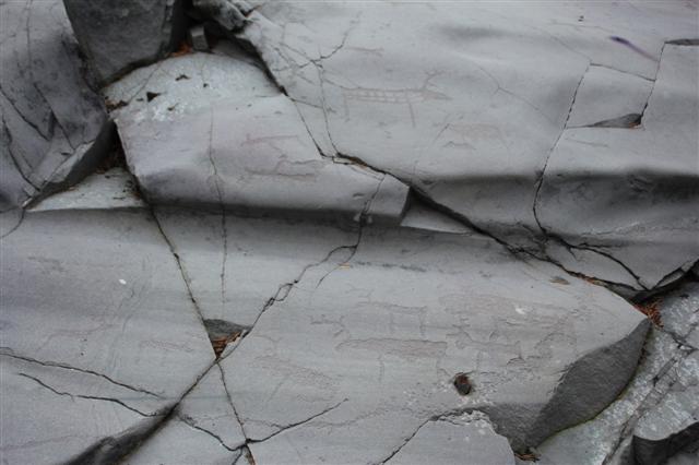 Questo panello è tra i più interessanti, quantomeno per la sua storia: in basso, sul centro a destra, è possibile vedere un tondino di ferro. Cosa ci fa un affare del genere, incassato in una roccia su cui è disegnata la storia? Semplice... Quando è stato installato come tirante per un palo elettrico, le iscrizioni qui presenti non erano ancora state scoperte! Quando si dice, la fortuna...
