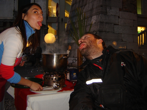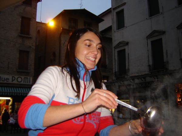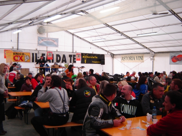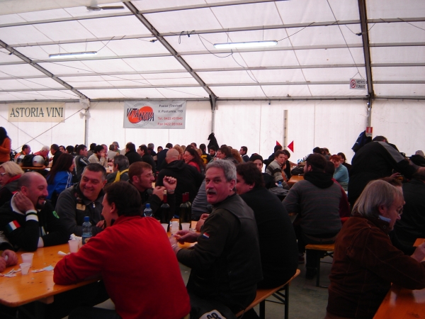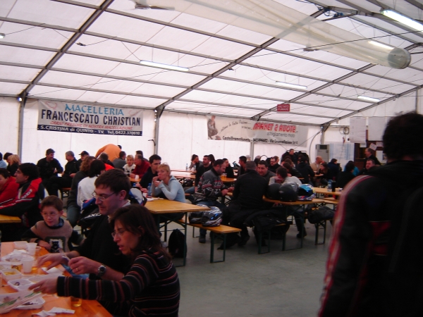 Tutti insieme ci uniamo al giro organizzato dal Motoclub Omobono Tenni, dopodiché, salutate le belle ragazzuole e Rugge72 e company, io e Ketto ci riportiamo in zona tendoni per il pranzo. A parte l'attesa snervante, siamo soddisfatti. Anche Chico ci raggiunge per il caffè e tutti e tre, insieme ad un amico di ketto arrivato nel frattempo, andiamo in centro a Treviso per bere un brulé, non prima però di avere vinto alla lotteria un set di coltelli io ed un contenitore Tupperware Ketto!