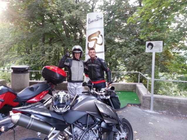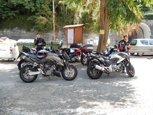 E' il momento del passo della Cisa, salita da Pontremoli veramente appagante, in cima una doverosa sosta al recente monumento a Marco Simoncelli (al quale è stata intitolata la piazzetta del passo), due chiacchiere con motociclisti autoctoni che ci rivelano le insidie della discesa (il tornante presso la casa cantoniera...