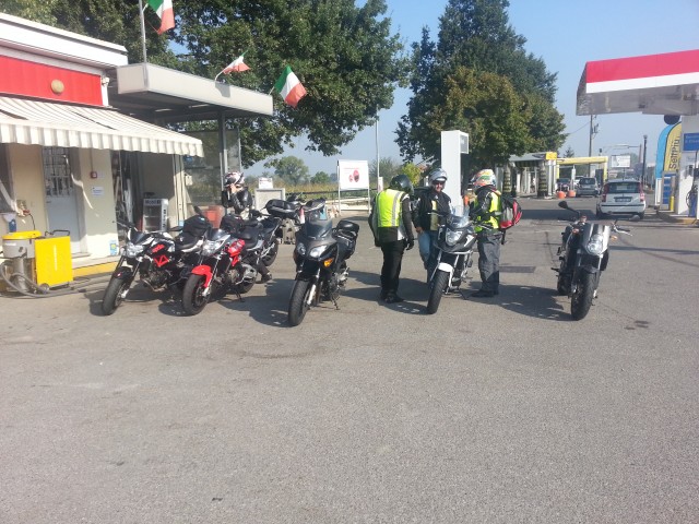 Ci si ritrova in 6 alla barriera di Melegnano, insieme ad altre decine di motociclisti che lì si erano dati appuntamento, e si prosegue per la noiosissima e rettilinea pallostrada fino a Casalpusterlengo. La A1 è un'esperienza principalmente olfattiva, paragonabile alla A14 cantata dal rocker di Correggio: "dalle visiere (in moto i finestrini non ci sono, per fortuna) passa odor di mare (no, al massimo di fiume o di risaia), diesel, m...a, morte e vita!"