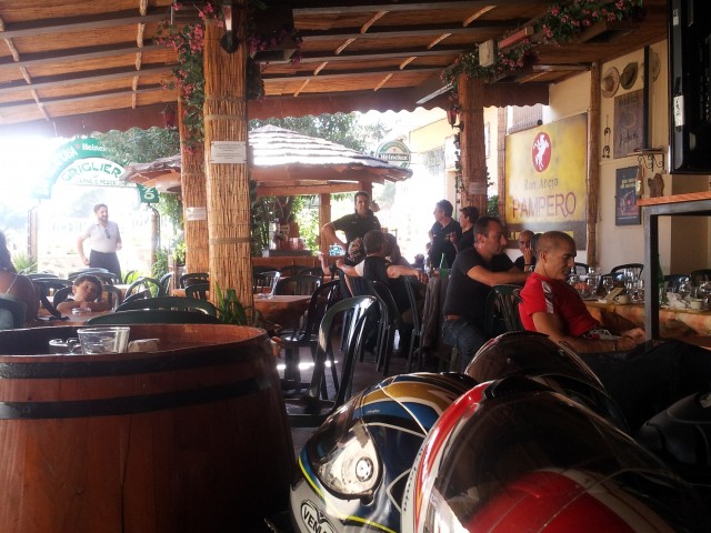 Finalmente riusciamo a far riposare le stanche membra mettendo le gambe sotto un tavolo.