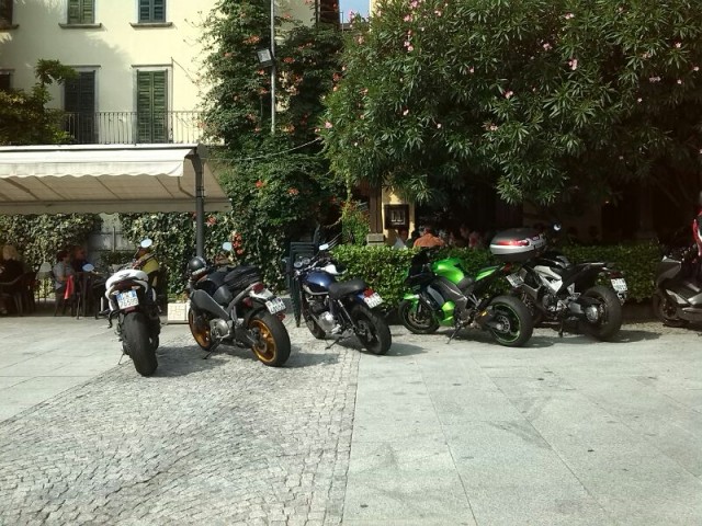no, la figura mitologica al femminile non funziona, meglio le amazzoni) che vedo per la prima volta e via lungo la sponda piemontese del lago Maggiore. A Lesa (ancora mi chiedo perché proprio quel punto di ritrovo... Ad Arona il navigatore di gatosloco79 ci fa deviare su una stradina secondaria che, pur frequentando la città da anni, non avevo mai percorso... riducendo effettivamente un po' la percorrenza!