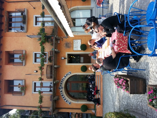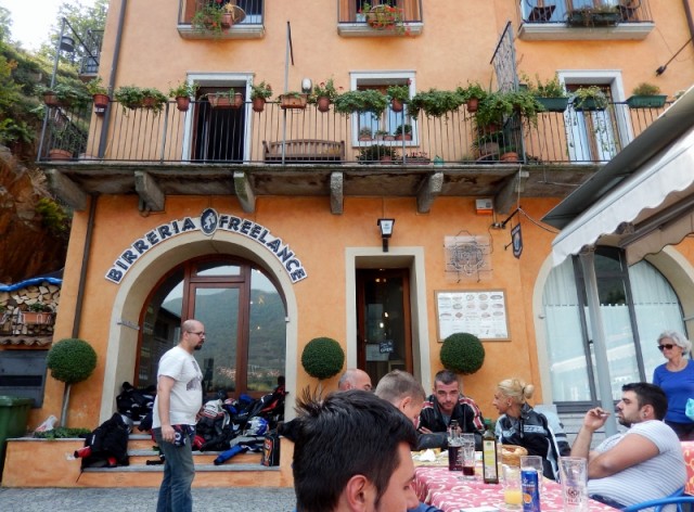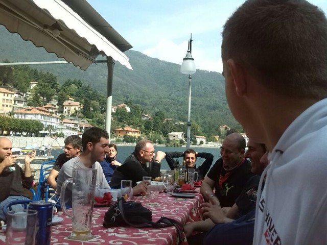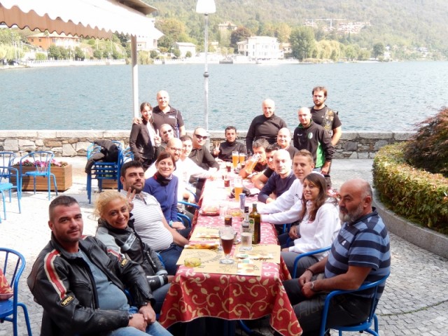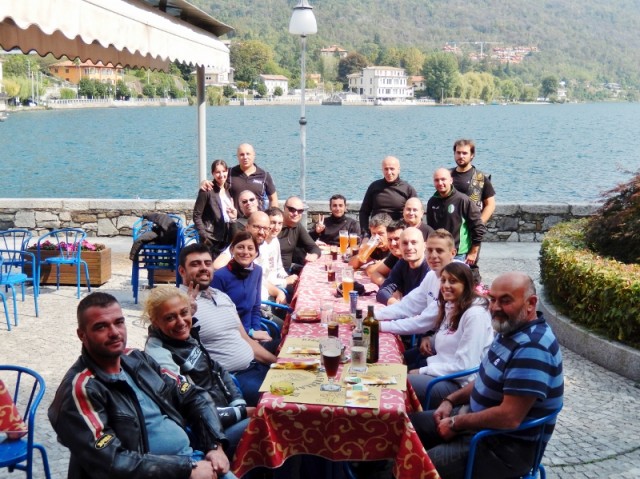Ricongiungimento a Baveno e via verso Mergozzo dove ci "aspettano" per il pranzo. Contribuiamo a riempire di moto la piazzetta sul lungolago e soddisfiamo sete e appetito alla birreria Freelance.