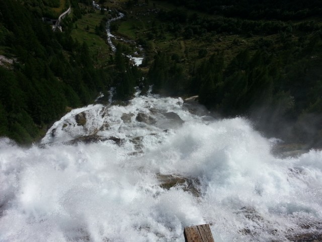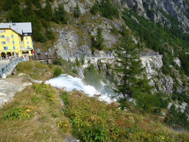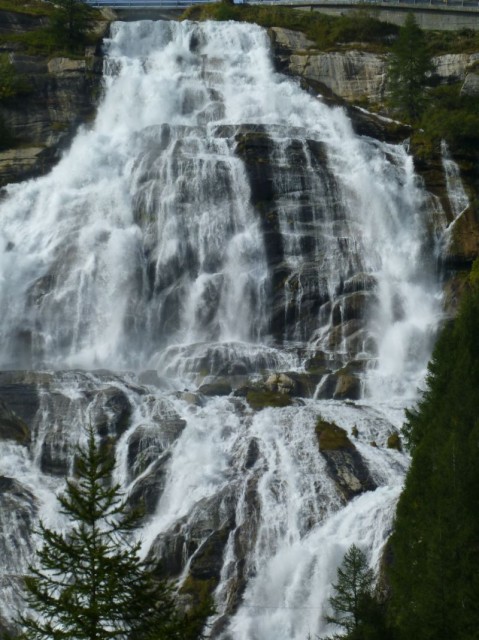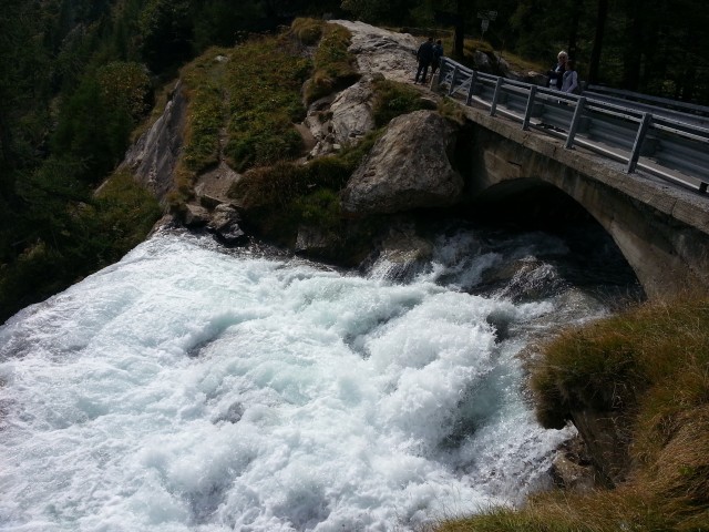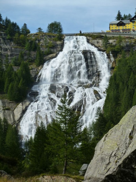 Percorriamo la val Formazza, la sua galleria elicoidale (non finiva più quella curva... 360° sono davvero lunghi), malediciamo un "Johnny Rettilineo" sulla sua Range Rover e finalmente arriviamo al cospetto della cascata del Toce: aperta quasi alla massima portata merita una foto. (mi fermo solo io a farla...