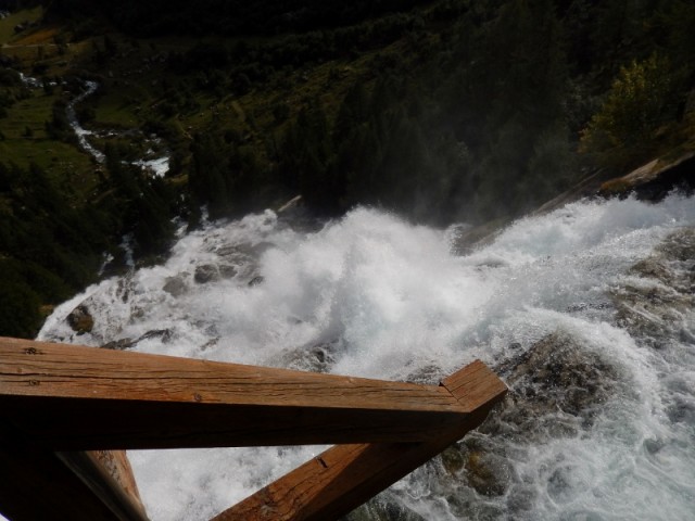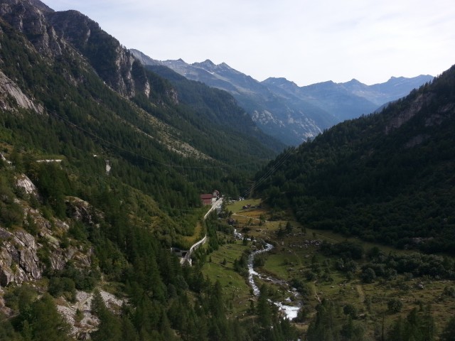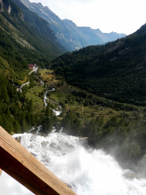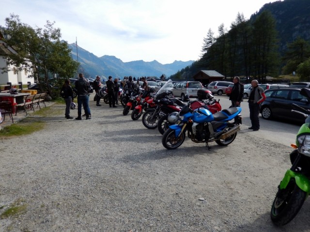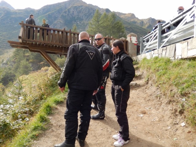 In cima alla cascata è d'obbligo un giretto sul balcone panoramico a sbalzo e pure una sosta per rifocillarsi un po'. Prima di girare le moto verso valle, saliamo ancora fino a Riale, vorrei raggiungere la diga di Morasco ma un cartello di divieto di transito ci obbliga a tornare indietro, peccato!