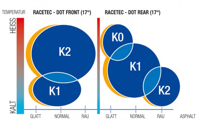 Per il posteriore se uno guarda e sta alla tabella che ci sia caldo o freddo la k1 rientra nel range a metà...quindi se uno non vuole cambiare gomme ognui uscita e vuole usarle tutte non solo nuove ma intendo finirle allora uno sceglie quelle per un range ampio di temperatura esterna....