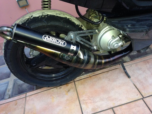 . Questa è la marmitta.. Voi cosa pensate? Inoltre quale taratura sarebbe ideale con arrow extreme + variatore malossi multivar nel phantom? Perchè lo scooter parte quando è a 8000 giri, e a 50 km/h sale a 9500 giri si o ad arrivare a 11500 a velocitá superiori.. Grazie è scusate la mia ignoranza e le mie troppe domande