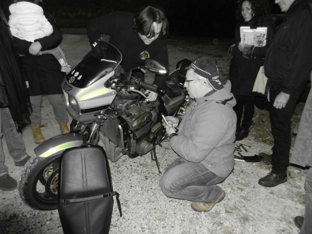 Nico (consigliere neo-eletto) non facendosi mancare nulla e primeggiando per sfiga in tutto il 2013 (con un'accelerazione degna del miglior Valentino Rossi sia all'adunanza che a questo pranzo) è riuscito, con una candela recuperata tra i ragazzi toscani e l'aiuto dell'immancabile Beppe, oramai meccanico personale di Domenico ai raduni, a rientrare nella sua romagna, dopo un viaggio fatto da Rimini a Lucca a 3 cilindri. (la voglia di Triumph è forte)!!!!