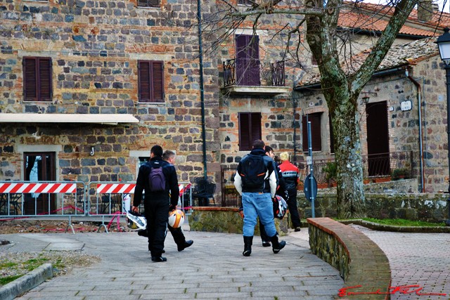 ) dura pochissimo: accostiamo, ci salutiamo con le moto accese ed i caschi in testa e partiamo al volo. Le prime curve verso Pitigliano selezionano subito il gruppo: mi sono permesso di aprire un attimo il gas per capire le caratteristiche dei partecipanti, visto che ne conoscevo solamente uno, e adottare una velocità di crociera che potesse essere alla portata di tutti.