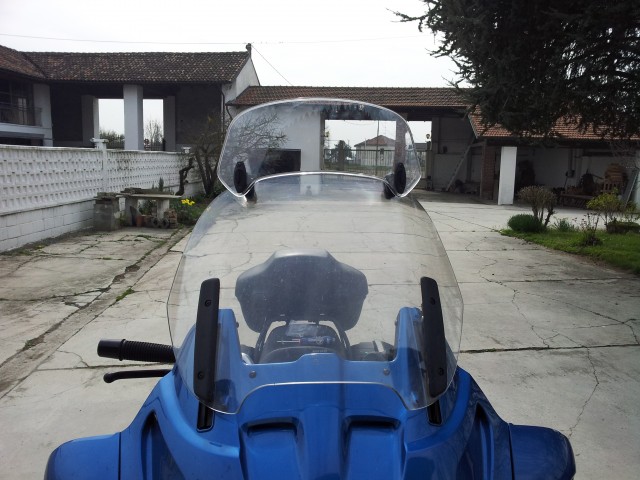 Conoscendo personalmente il buon Vasco, detto Archimede, sarei per consigliarti il suo deflettore, giusto poco tempo fa ci siamo incontrati qui in Romagna per una bikerfest mangereccia, e nell'occasione mi ha spiegato quali materiali ha usato per la sua costruzione, compreso quello del "vetro" che è un resina molto resistente, tanto che non ha trovato il sistema per sagomarla, quindi si adatta automaticamente alla curvatura del parabrezza quando stringi i due morsetti.