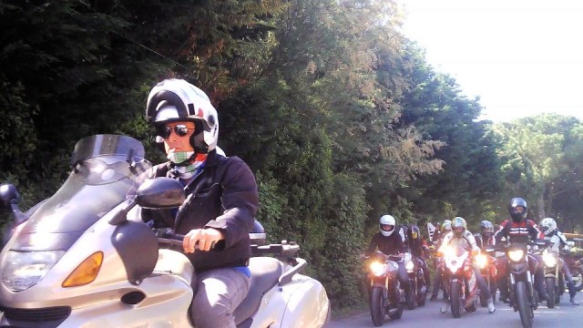 Qui il fotografo ufficiale m'ha immortalato che sembro un capo mandria alla testa di un branco di motociclisti scatenati!!!!!