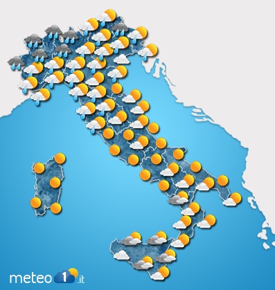 sardegna con qualche debole pioggia, piu' probabile sull'alta