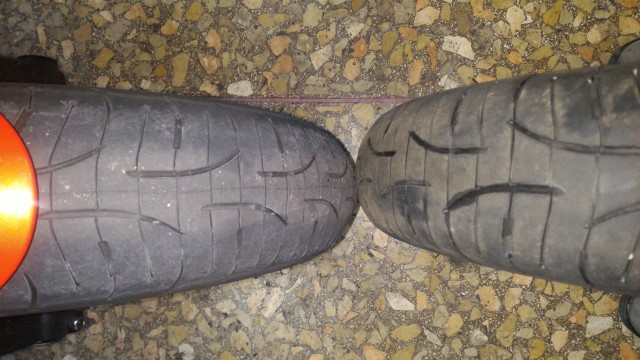 Con il primo treno di PR3 essendo alle prime armi, ci percorsi circa 23.000 km, non avevo ancora una guida sportivissima, e le cambiai perchè ero arrivato sia con l'anteriore che con il posteriore alla fine, e lo scalino sul lato si notava benissimo.