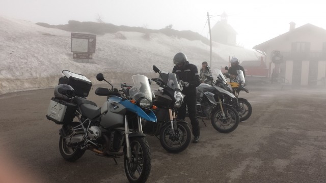 Considerazioni motociclistiche sul primo giorno? Tutto bene. Siamo riusciti a non bagnarci e visto anche il Sole. Solo un po’ di nebbia sul Valles.