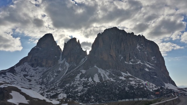 Percorriamo il Passo Tre Croci, il Falsarego, Passo Valparola, Passo Gardena, Passo Sella, risaliamo al Pordoi e quindi torniamo su Canazei.