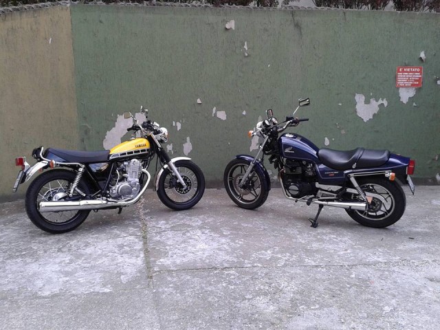 ; grazie ai riflessi di un mio amico che fa da "cuscino" i danni si limitano alla leva della frizione leggermente piegata e a due graffi microscopici sullo specchietto.