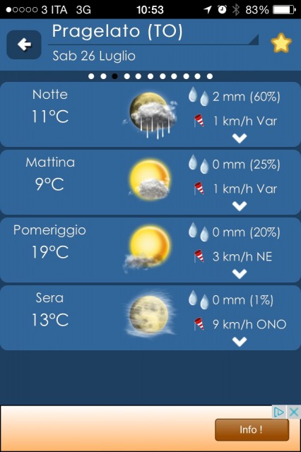 mentre 3bmeteo dice poco nuvoloso e nulla più.