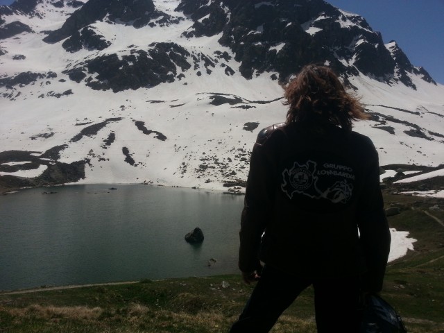 Passato sank Moritz si scende verso Zernez e Martina costeggiando l'Inn, bella strada, si viaggia celermente, tanto che Marco e Maria, abituati a vedermi praticamente fermo, pensano di avermi lasciato indietro, e si fermano ad aspettarmi. Era successa la medesima situazione al giro con Asterix, tutti ad aspettarmi, mentre io era davanti al campanile del Resia , tanto da farmi sacrestano onorario. Ora, prima aspettiamo “quelli che aspettano” per una buona mezz'ora, poi illuminati decidiamo che conviene rifornire in svizzera, quindi perdiamo un'ora buona. Nun se po, nun se po. Via alla volta del Resia, valle dolcissima e stupenda, lago verdissimo e sullo sfondo l'imponente gruppo dell'Adamello ancora stracolmo di neve. Questa settimana, ogni rompipalle che verrà a guastarmi le feste, lo ignorerò sovrapponendogli immagini come questa. Sosta di fronte al campanile, foto di gruppo, per i caffeinomani, altra dose al baretto di fronte al lago, io finalmente rispondo alle 15 chiamate di mia moglie sul cell, e mi mangio un gelato. La commessa me lo deve confezionare due volte, perchè come me lo porge la prima volta, con gesto brusco, questo parte come la fionda che stroncò Golia e se non mi scosto mi finisce sugli occhiali. Si riparte direzione Malles Venosta per poi deviare verso Santa Mari Val Mustir e l'Umbrail pass. Bisogna però sapere, che mentre noi poveri disgraziati a Martina si faceva la sauna per fare benzina, con un caldo insopportabile, il buon Pino meditava. Cosa è arduo saperlo, ma fatto sta che è stato l'unico, a non fare benzina. Alla ripartenza dal Resia, lui dice, vado avanti cosi mi fermo a fare benzina e non perdiamo tempo. Morale, dopo 10 km nessun distributore, noi svoltiamo per la svizzera e lui lo avvistano in direzione Merano, che se non trova una pompa per sbaglio finiva che pernottava a Trani. Lo aspettiamo, altra mezzora, per constatare che a meno di 5 km appena entrati in svizzera c'erano due distributori ad aspettarlo. Saliamo verso l'Umbrailpass, bellissimo, ma davvero, sono le 17,30, una luce particolare, tutte le moto in sequenza che salgono in questo scenario, ricco di abeti e di verde intensissimo, per me emozionante. Una macchina si materializza dietro una curva, a fatica la sorpasso , ma il conducente sembra di proposito ostacolare il nostro passaggio, rallento per cercare a mia volta di rallentarlo per facilitare gli altri, un po passano poi Marco mi fa cenno di andare, girandomi vedo Diego Carlo che mi ha letto nel pensiero , non so come l'abbia presa l'automobilista, visto che Diego ci discuteva, ma intanto passiamo tutti. Intanto si sale, sono affascinato, mi è piaciuto tantissimo e mi guardo un po' intorno, troppo, seguo con lo sguardo gli amici che sono avanti, li vedo piccini , puntini che si muovono con lo sfondo candido della neve. Affronto una curva con leggerezza e la mia moto la allarga, all'ultimo mi accorgo che sul perimetro esterno dell'asfalto appena rifatto, c'è una cunetta per lo scolo dell'acqua, se freno mi impasto, d'istinto apro il gas più che posso, sento il posteriore che slitta, aspetto l'impatto....che non c'è, qualcuno da lassù ci ha messo una pezza e forse so anche chi è. Io mi sono spaventato ma non mi sono visto, forse Marco e Maria che erano dietro e mi hanno visto ,....erano più spaventati di me. Questa è la seconda volta, su questa strada ,...che rischio. Ora ripensandoci sono più spaventato di prima. Grazie .