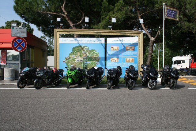 Area di servizio Piave Est A27 (benzina a peso d'oro) dove abbiamo agganciato i mitici Godzilla62 e Cavillo.
