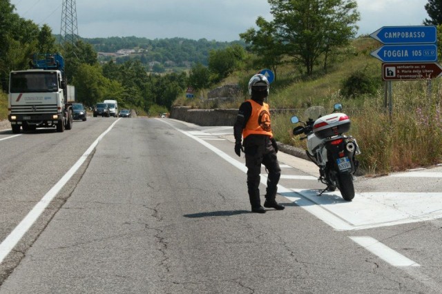 , se non altro, dato che si sale un poco in quota, il caldo asfissiante si attenua. Prendiamo la A15 per Pescara ed usciamo a Cocullo. Da qui percorriamo le splendide Gole del Sagittario dove il tempo comincia a peggiorare