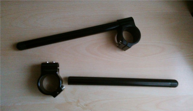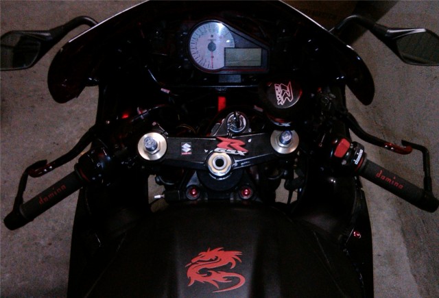 Concludiamo l'opera con delle belle manopole Domino nere e rosse mescola racing, posizionate su consiglio dell'amico JO74 usando della lacca per capelli per lubrificare prima e fissare poi, e anche questa pratica è archiviata. Anzi, quasi archiviata, visto che ho dimenticato di fare la foto