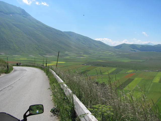 Mai però mi sarei aspettato certi spettacoli. In particolare devo ringraziare BiemwistaXCaso che mi ha segnalato la strada da fare tra Visso e Castelluccio tagliando proprio in mezzo al parco dei monti Sibillini perchè è veramente un percorso fantastico, divertentissimo da fare in moto e stupendo per gli occhi. Qualche foto ne anticipa la bellezza... ma arrivarci e vederlo per la prima volta coi tuoi occhi ti fa rimanere a bocca aperta...