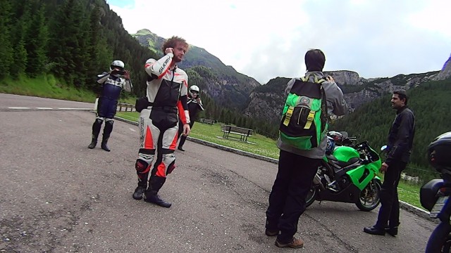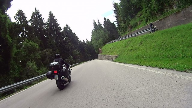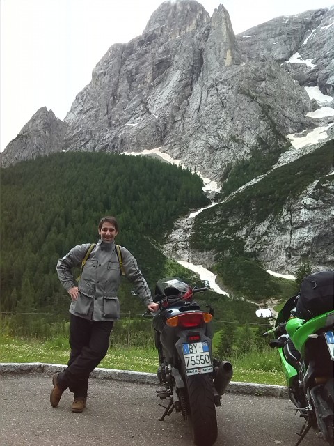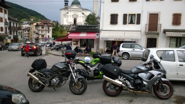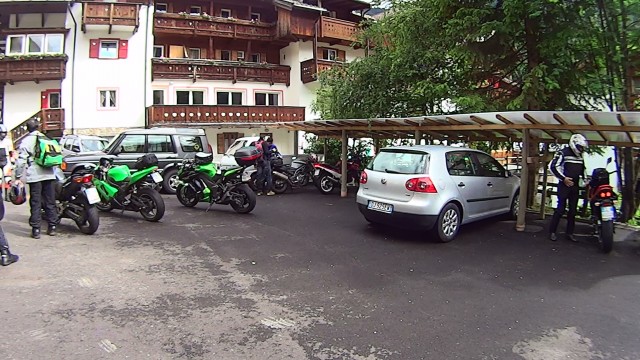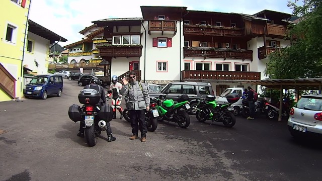 e il mattino dopo si riparte.. c'è il sole! (e io lo dissi, la sera prima.. motociclista ottimista, Dio l'aiuta..) pronti ad aggredire tutte le curve delle Dolomiti, di Brenta e non