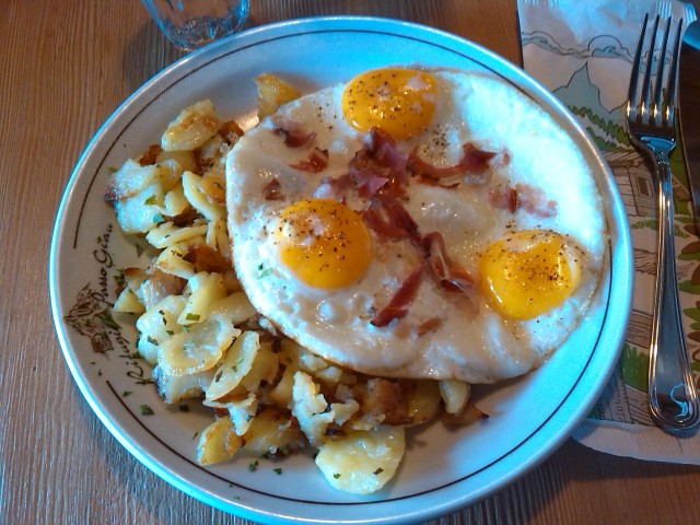 chiudo con una doverosa citazione del pranzo al rifugio Giau (2236 m s.l.m.).